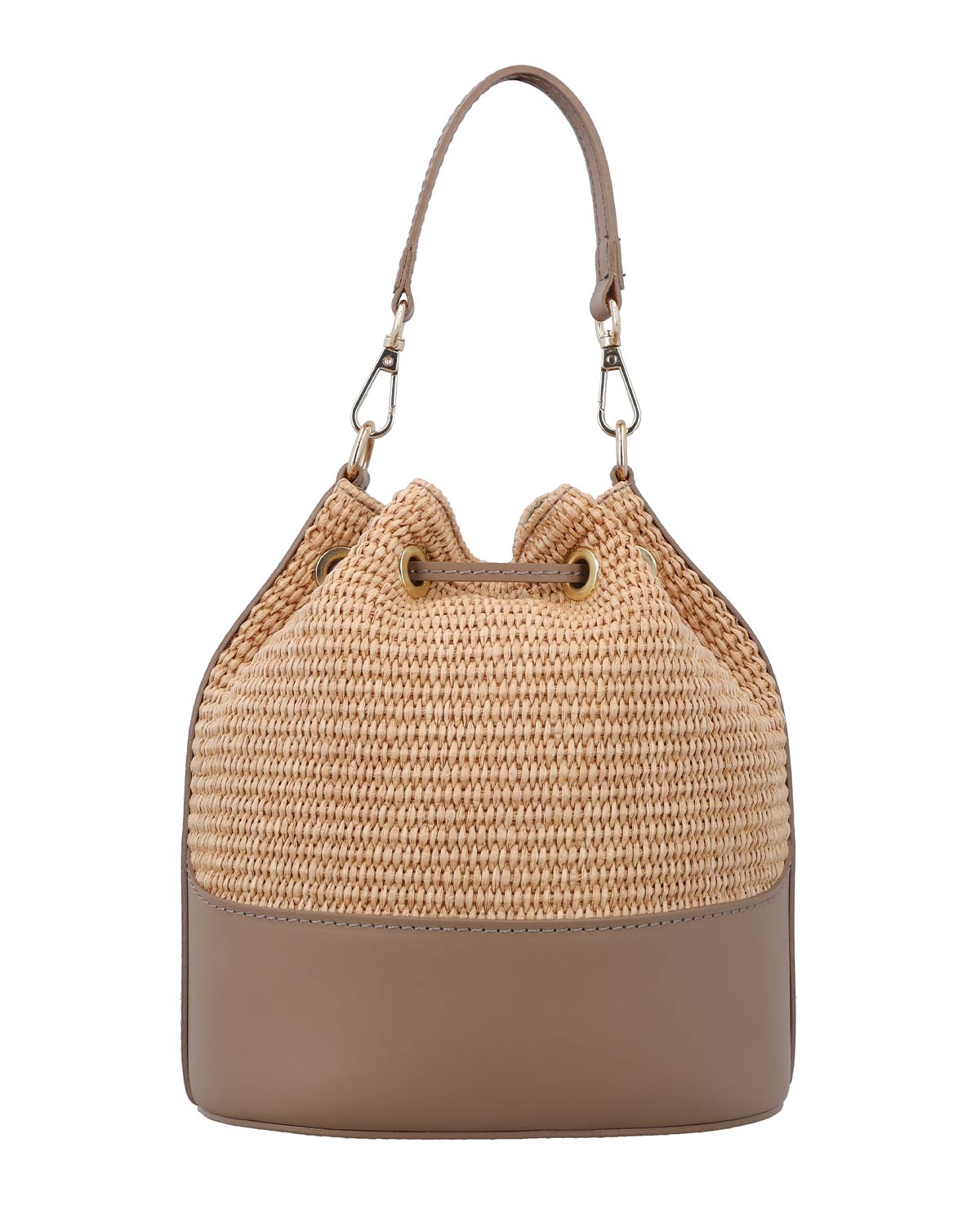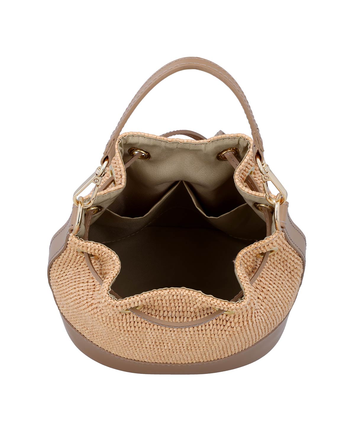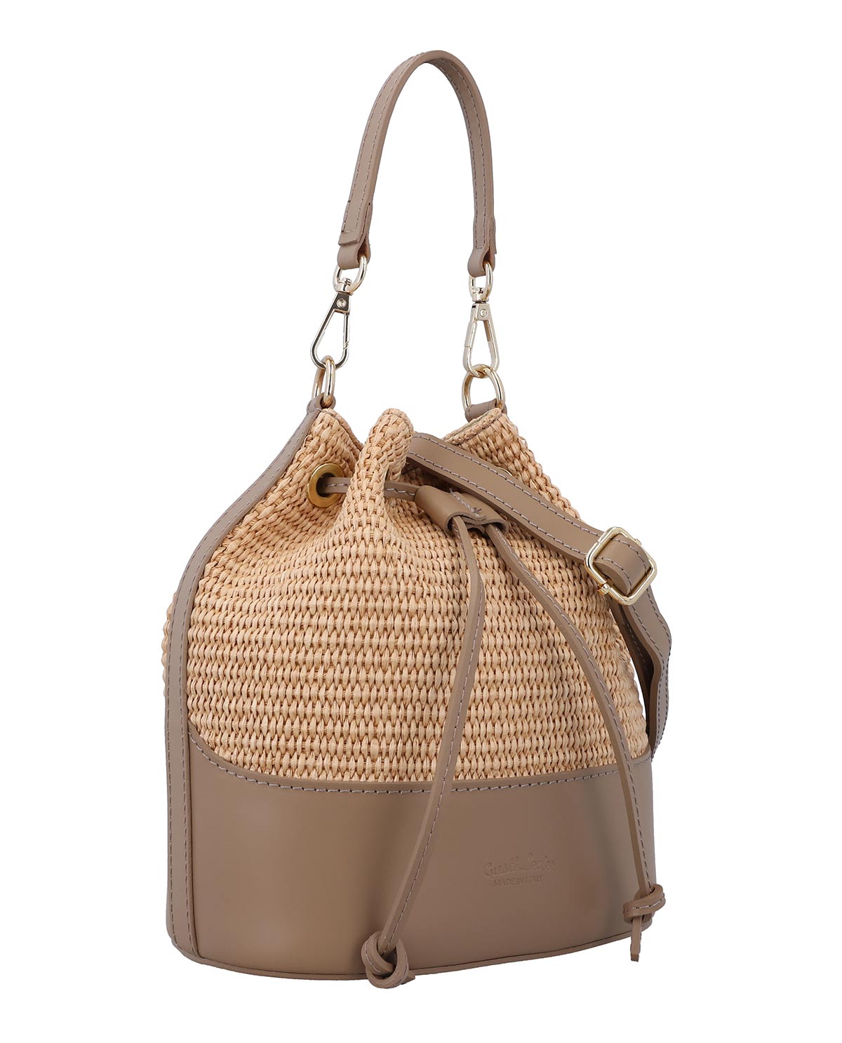 La borsa a secchiello "Nuria" è la combinazione perfetta di eleganza senza tempo e funzionalità pratica. Il suo materiale in rafia finemente intrecciato conferisce alla borsa una leggerezza naturale. La rafia è un materiale vegetale ottenuto dalle foglie di una palma. È particolarmente noto per la sua robustezza e la sua texture leggera. Insieme al fondo in pelle liscia e agli accenti in pelle, garantisce durata e stabilità. Questa borsa non è solo un vero colpo d'occhio, ma è anche incredibilmente versatile e si adatta perfettamente alla tua vita quotidiana. Grazie al logo dorato "Gusti Leder Made in Italy", la borsa riceve un tocco elegante che sottolinea il look vintage moderno.