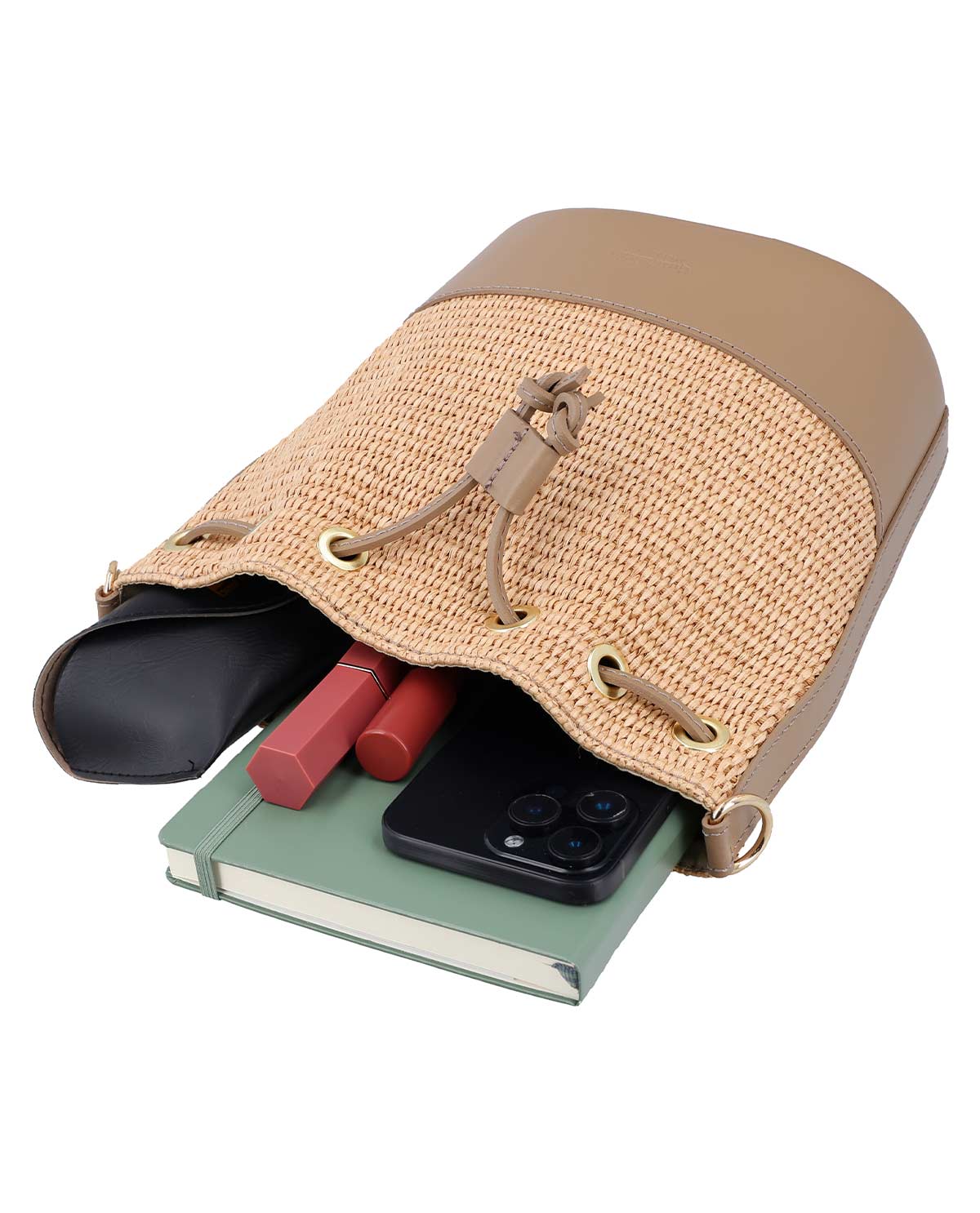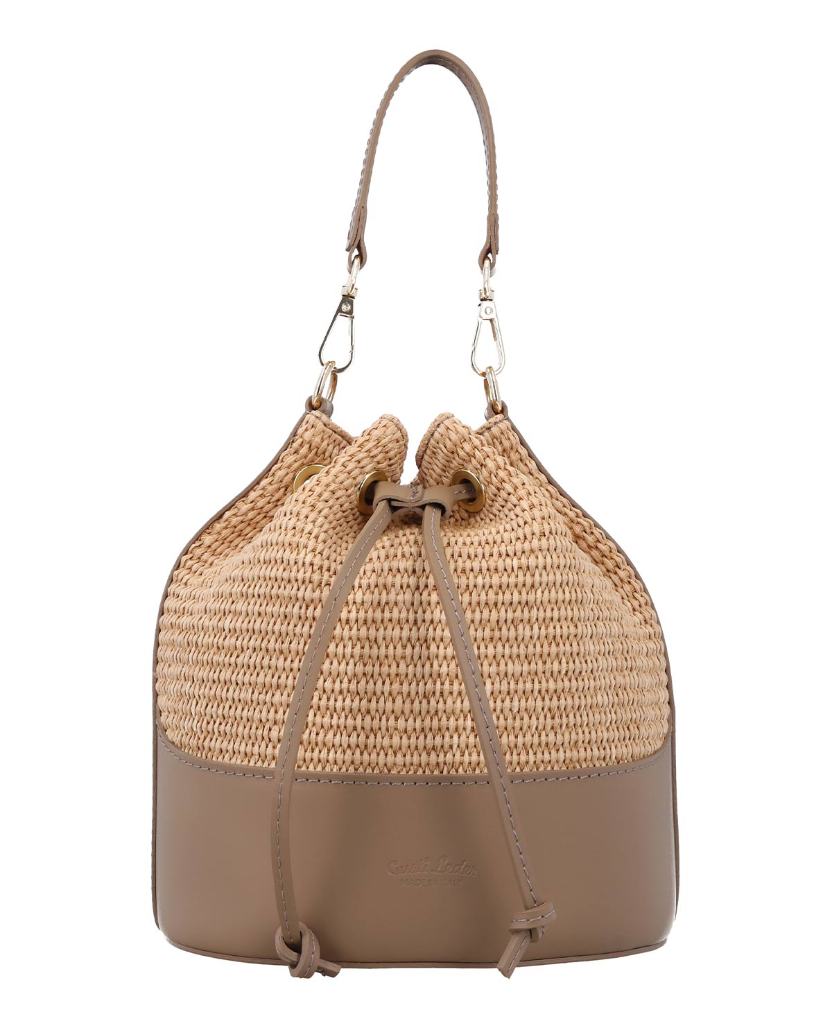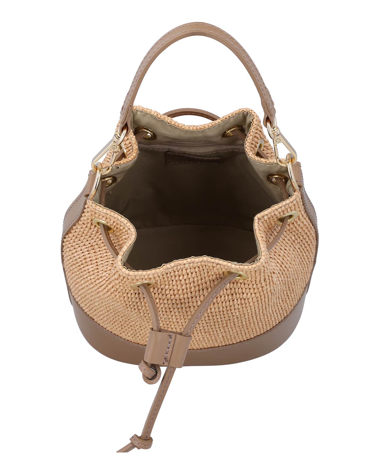 La borsa a secchiello "Nuria" è la combinazione perfetta di eleganza senza tempo e funzionalità pratica. Il suo materiale in rafia finemente intrecciato conferisce alla borsa una leggerezza naturale. La rafia è un materiale vegetale ottenuto dalle foglie di una palma. È particolarmente noto per la sua robustezza e la sua texture leggera. Insieme al fondo in pelle liscia e agli accenti in pelle, garantisce durata e stabilità. Questa borsa non è solo un vero colpo d'occhio, ma è anche incredibilmente versatile e si adatta perfettamente alla tua vita quotidiana. Grazie al logo dorato "Gusti Leder Made in Italy", la borsa riceve un tocco elegante che sottolinea il look vintage moderno.
