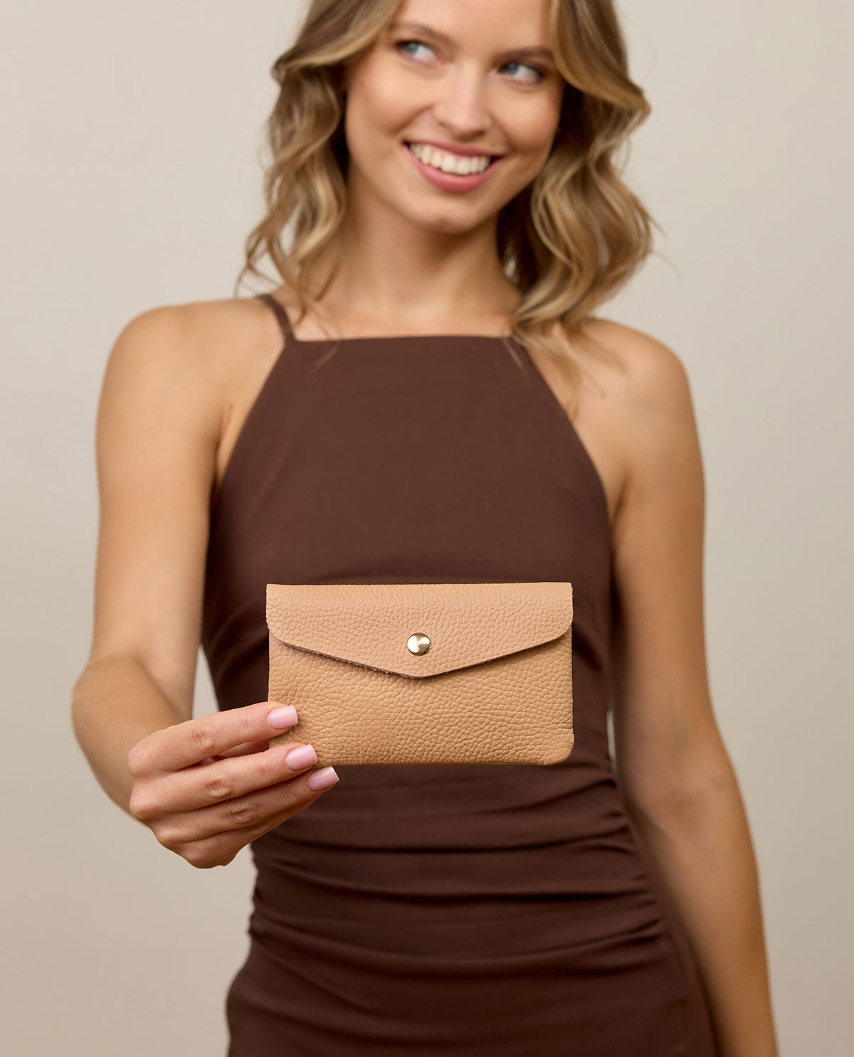La borsa portaoggetti "Anela" è più di un semplice accessorio – è la perfetta combinazione di design elegante e funzionalità pratica. La sua elegante patta con chiusura magnetica garantisce che i tuoi oggetti essenziali siano al sicuro e allo stesso tempo facilmente accessibili. Realizzata in pelle di alta qualità, incarna l'arte dell'artigianato italiano e si distingue per il suo aspetto raffinato e la sua durata. Inoltre, puoi personalizzare "Anela" con un'incisione personale – trasformando così un accessorio di alta qualità in un pezzo unico molto speciale. Questa borsa si integra perfettamente nella tua vita quotidiana e dona al tuo look un tocco sofisticato.