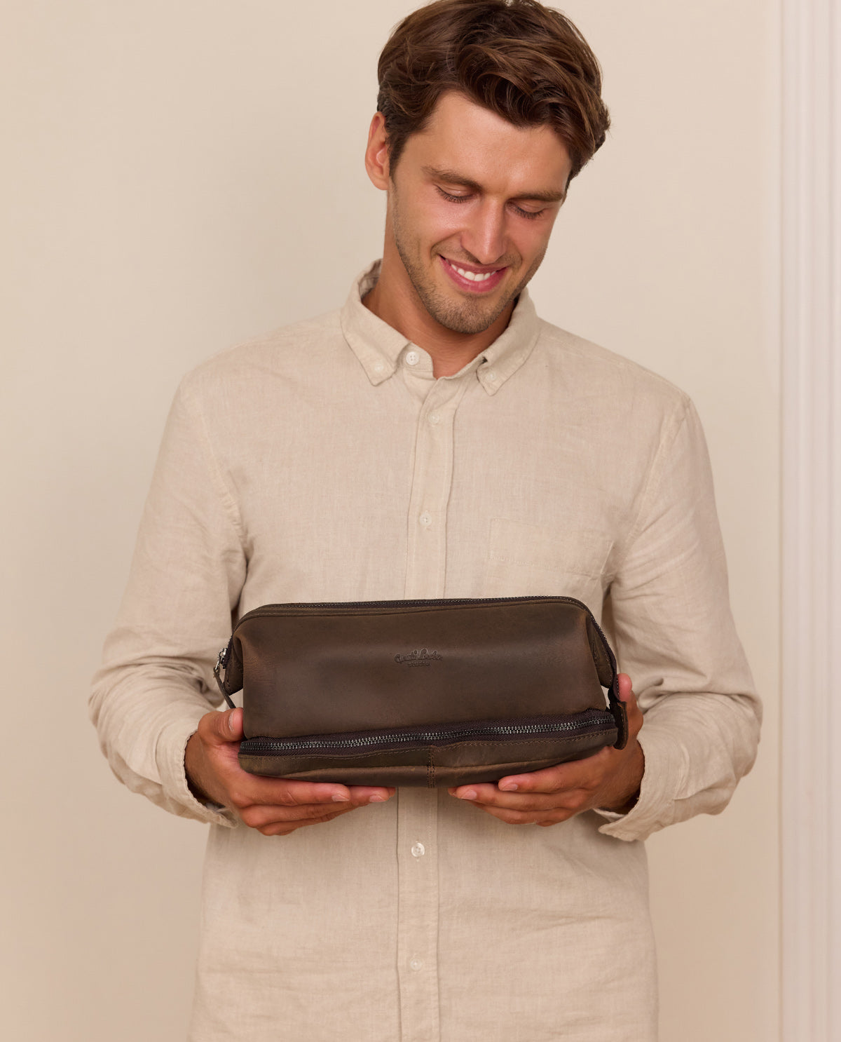 Il beauty case "Quinn" porta ordine ed eleganza nei tuoi accessori da viaggio. Realizzato in pelle di alta qualità, combina un design senza tempo con una funzionalità eccellente. Che si tratti di un breve weekend o di un lungo viaggio, "Quinn" assicura che i tuoi prodotti per la cura siano riposti in modo sicuro e con stile.