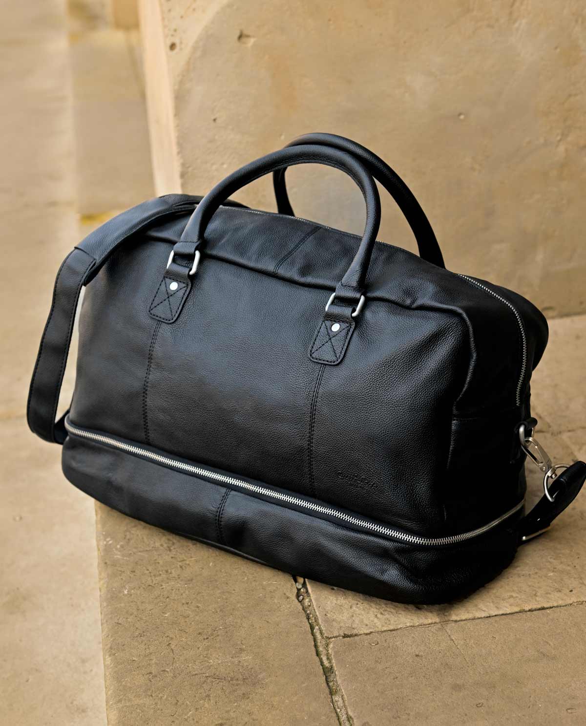 "Justin" è estremamente spazioso: con una capacità di circa 32 litri, la spaziosa borsa ha abbastanza spazio per i tuoi vestiti, scarpe e beauty case, ma anche per notebook e altra attrezzatura L'elegante look granuloso della pelle di bovino conferisce a "Justin" il fascino di una borsa da viaggio vintage, senza rinunciare ai vantaggi delle moderne borse da viaggio. Inoltre, dispone di una tasca con cerniera in basso, dove puoi ad esempio riporre la tua camicia preferita o il caricabatterie. I due manici fissi con tracolla rimovibile completano il design del weekender ed è pronto a partire - per piccole e grandi avventure.