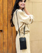 Borsa per cellulare Borsa a tracolla in pelle Borsa a spalla Donne Nero Pelle