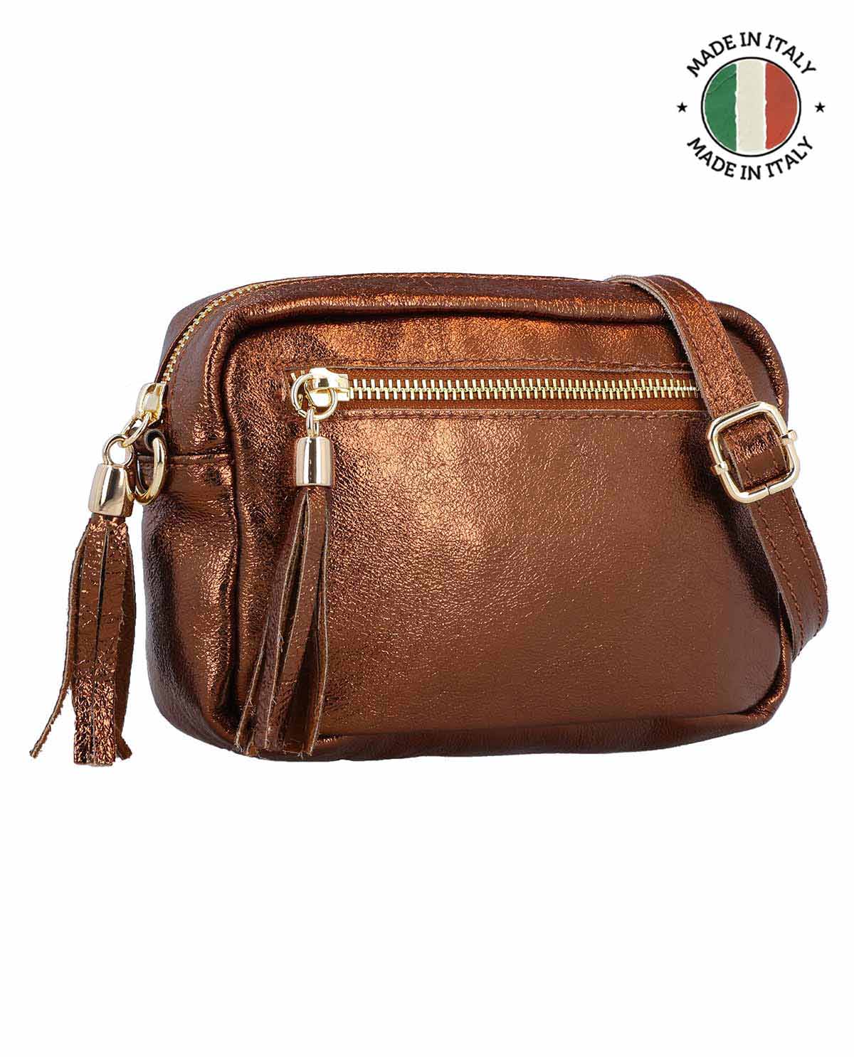La borsa a tracolla "Cariba" in pelle di alta qualità è il compagno ideale per ogni donna che apprezza sia lo stile che la praticità. La sicura chiusura con cerniera protegge in modo affidabile i tuoi oggetti di valore, mentre il pendente elegante sulla zip dona alla borsa un accento speciale. All'interno ti aspetta una fodera in tessuto chiara e finemente strutturata, che non solo ha un aspetto elegante, ma ti permette anche di avere una visione chiara dei tuoi essenziali. Inoltre, troverai un discreto logo "Made in Italy" finemente impresso e una patch incisa integrata, che offre spazio per una dedica personale. In questo modo, "Cariba" diventa un accessorio non solo bello, ma anche unico.