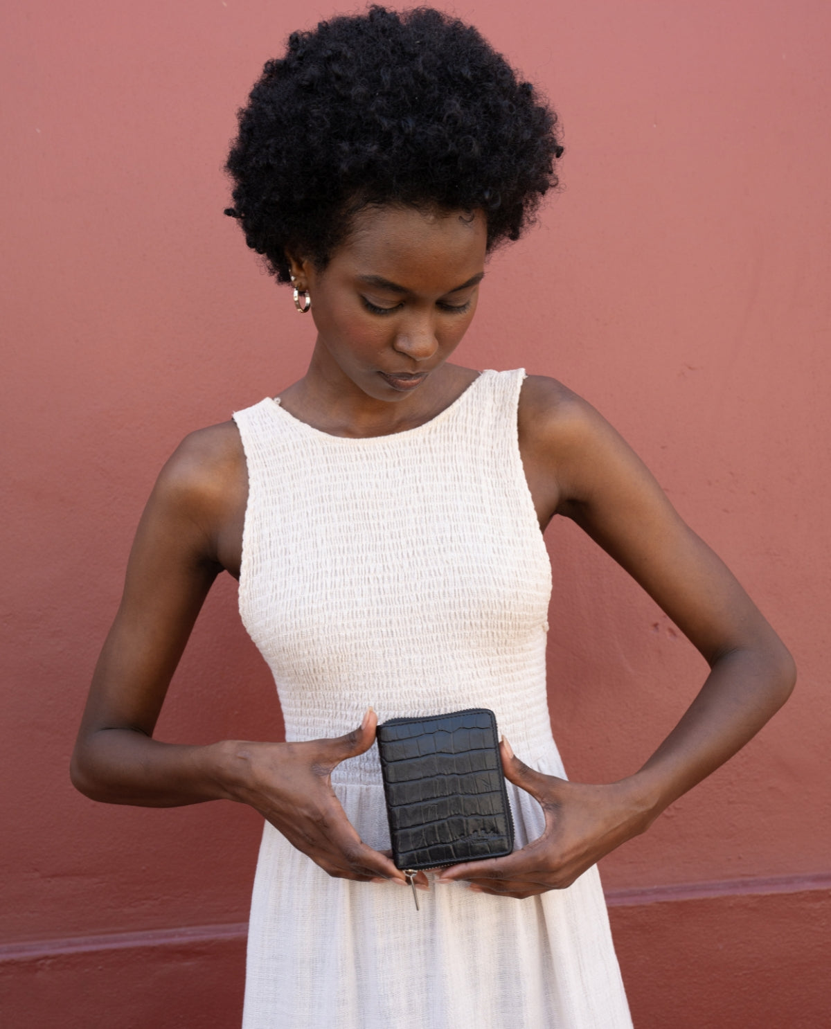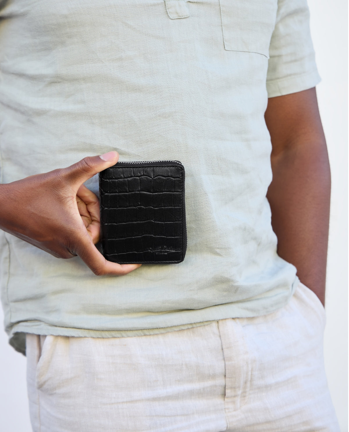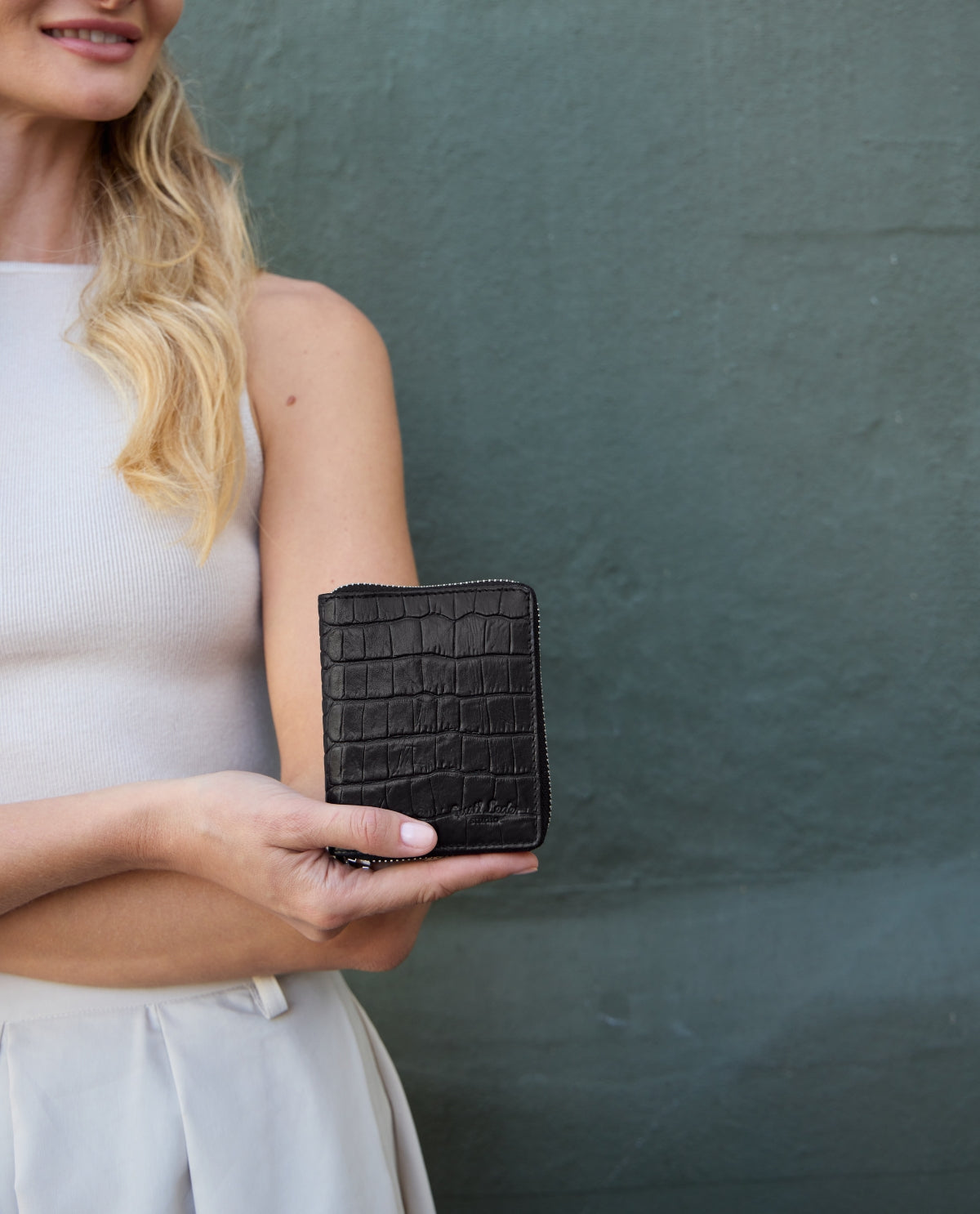 Cerchi un portafoglio piccolo ma con abbastanza spazio per le tue banconote, carte e monete? Un portafoglio agile che si adatta a qualsiasi borsa, zaino o marsupio, anche il più piccolo? Realizzato in pelle bovina di alta qualità, "Melli" ti offre esattamente questo e si distingue anche per il suo design trendy in stile coccodrillo. Funzionalità e alla moda!