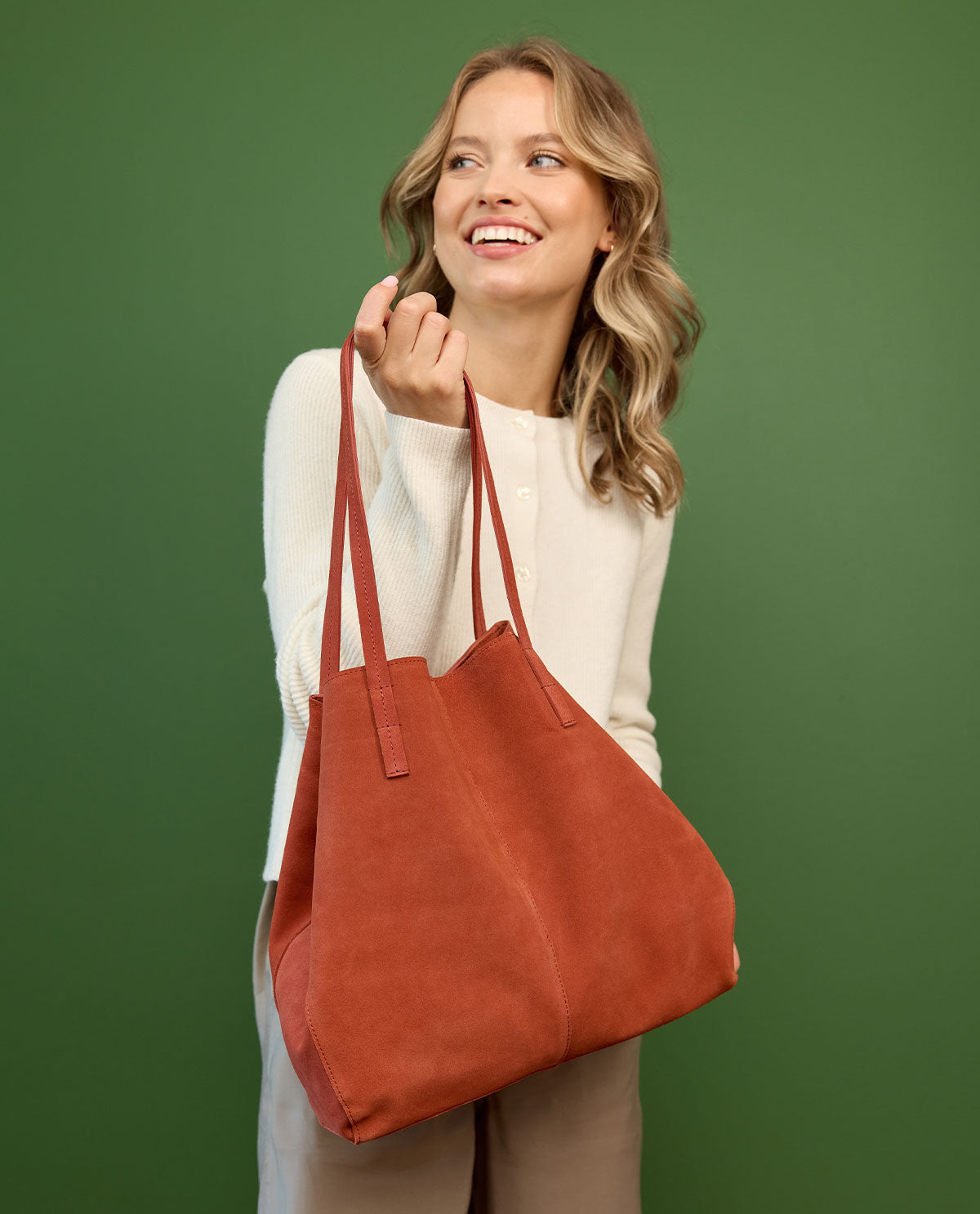 Con "Aurea" la tua quotidianità acquisisce un tocco di eleganza e leggerezza. Questa shopper elegante in pelle di alta qualità convince per il suo design chiaro e la sua forma armoniosa. Perfetta per una passeggiata in città, il tragitto verso l'ufficio o incontri rilassati con amici – "Aurea" ti accompagna con moderna discrezione e raffinata praticità. La chiusura magnetica ai lati assicura che la borsa rimanga chiusa in sicurezza, mantenendo comunque la sua silhouette flessibile ed elegante. Così "Aurea" unisce funzionalità ed estetica in modo particolarmente affascinante.