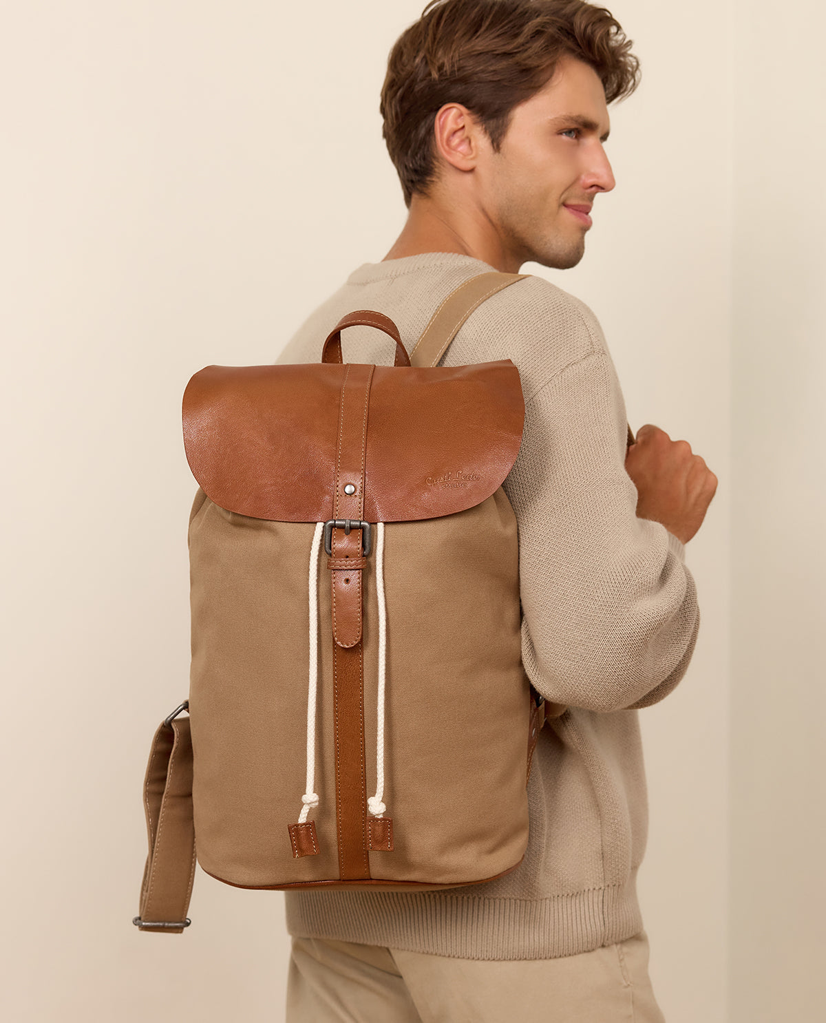 Zaino da città zaino per laptop zaino beige canvas e pelle