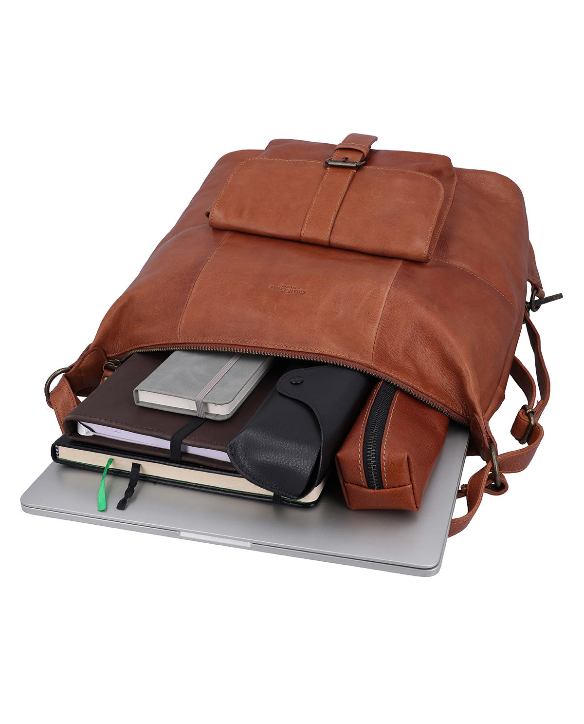 Die "Armand" bietet Dir darüber hinaus clevere Aufbewahrungsmöglichkeiten, um Deine Sachen sicher und organisiert zu verstauen. Neben dem Hauptfach hat die Tasche eine Fronttasche mit einem klassischen Schnallenverschluss und zwei Innenfächer, eines davon mit Reißverschluss für kleine Wertgegenstände. Dank der zwei verstellbaren Ledertrageriemen kannst Du die Tasche ganz nach Deinen Vorlieben als Schultertasche oder Rucksack tragen. Im Inneren befindet sich zudem ein praktisches Gravurpatch, das Deiner Tasche eine persönliche Note verleiht.
