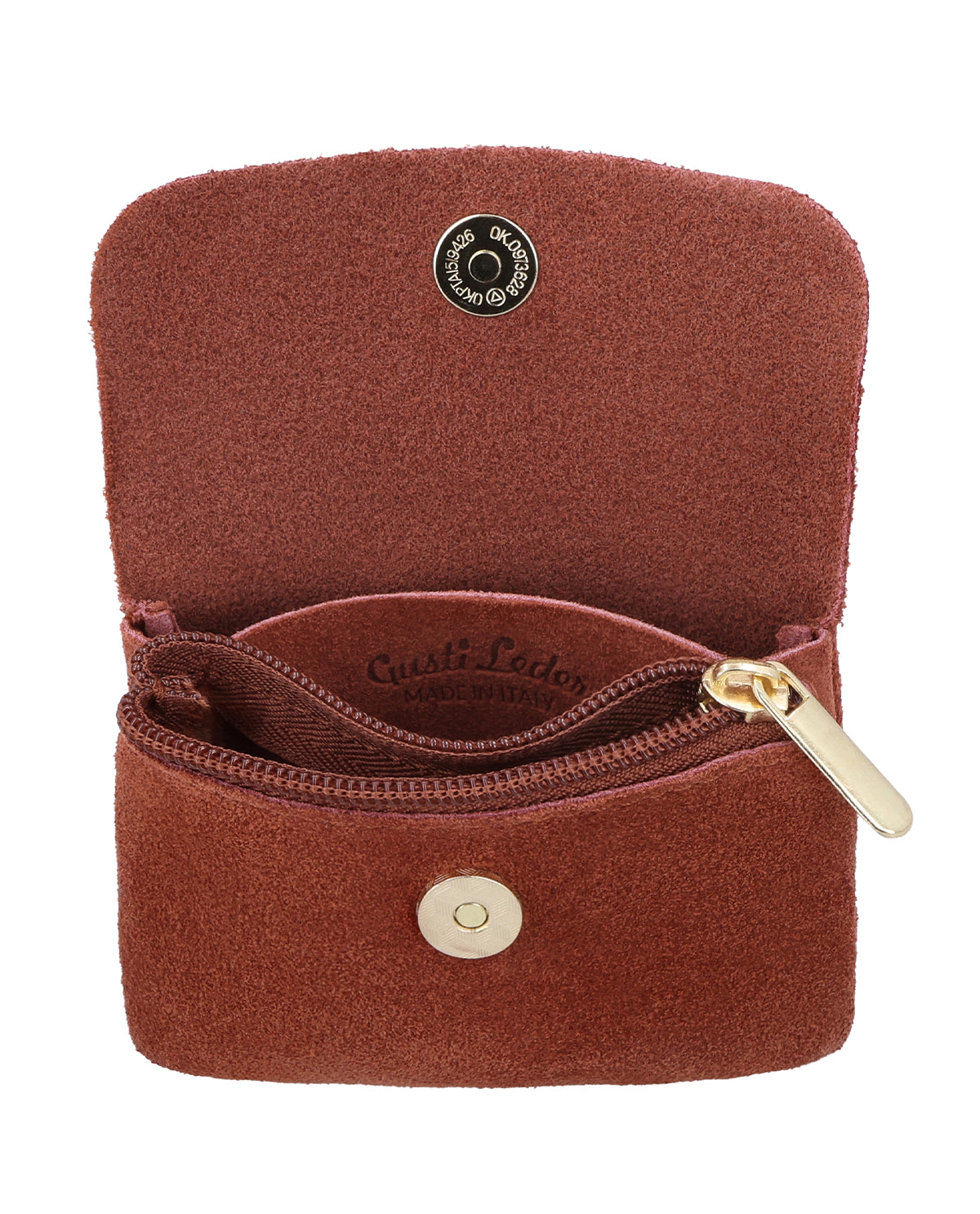 Aufbewahrungstasche Geldbörse Portemonnaie Geldbeutel Organizer klein Ledertasche Damen Braun Leder - Made in Italy