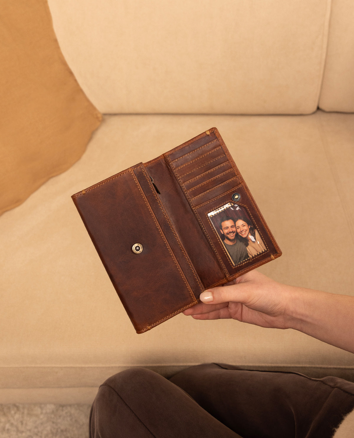 Entdecke unsere hochwertige Damen-Geldbörse "Angelique" aus braunem Leder – ein eleganter Begleiter, der Design und Funktionalität perfekt vereint. Inspiriert durch den urbanen Berliner Flair ist sie ideal für Deinen Alltag, ob beim Stadtbummel, im Café oder auf Reisen. Das echte, strapazierfähige Leder sorgt für eine edle Optik und eine angenehme Haptik, die mit der Zeit noch schöner wird. "Angelique" steht für Stil, Qualität und Organisation – alles, was Du von einer modernen Geldbörse erwartest.