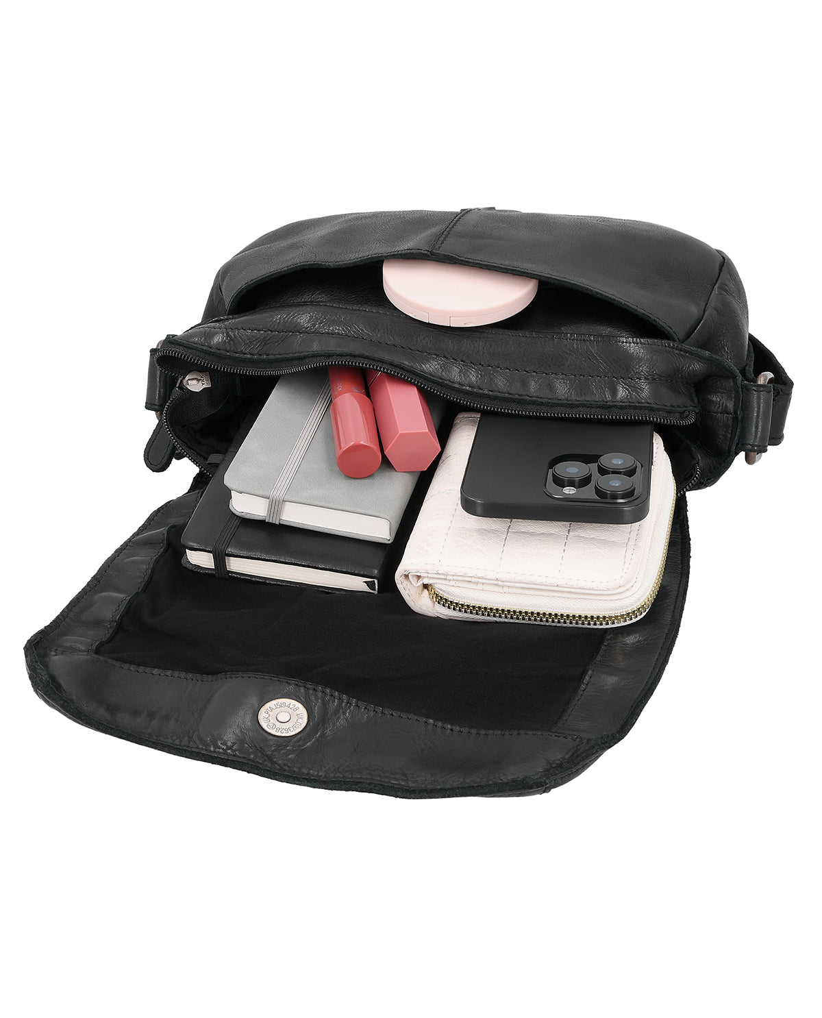Die kleine Handtasche „Aliya“ ist eine schwarze Lederhandtasche für Damen, die durch ihre geflochtene Oberfläche sofort ins Auge fällt. Das gewaschene Rindsleder wirkt angenehm weich und verleiht der Tasche eine entspannte, hochwertige Ausstrahlung. Bereits im Alltag zeigt sich „Aliya“ funktional: Ein verstecktes AirTag-Fach sorgt für zusätzliche Sicherheit, während der verstellbare Schulterriemen flexible Tragemöglichkeiten bietet. Die Kombination aus Magnetverschluss an der Front und Reißverschluss im Hauptfach verbindet Komfort mit einem sicheren Gefühl unterwegs.