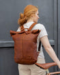 Rolltop Kurierrucksack Rucksack Lederrucksack Vintage Cityrucksack Outdoorrucksack Laptoptasche Unirucksack Wanderrucksack Braun Leder