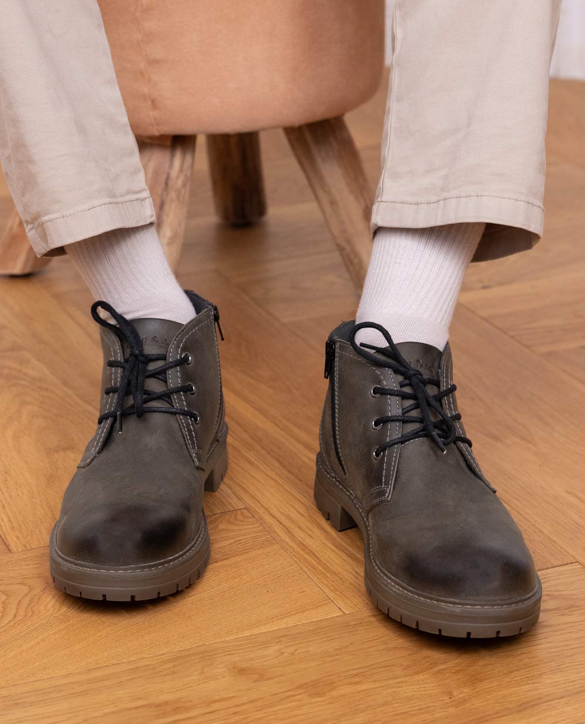 Mit "Peyman" bringst Du Stil und Komfort perfekt in Einklang – auch an den kältesten Tagen des Jahres. Das hochwertige Rindsleder mit matter, grauer Oberfläche und kontrastierenden weißen Nähten verleiht den Schuhen einen modernen und zugleich klassischen Look. Der Schnürverschluss in Kombination mit einem seitlichen Reißverschluss sorgt für maximalen Tragekomfort und erleichtert das An- und Ausziehen. Das dezent geprägte Gusti Leder Logo an der Ferse unterstreicht die edle Verarbeitung und den zeitlosen Stil dieser Winterschuhe, die Dich zuverlässig durch Schnee, Regen und Kälte begleiten.