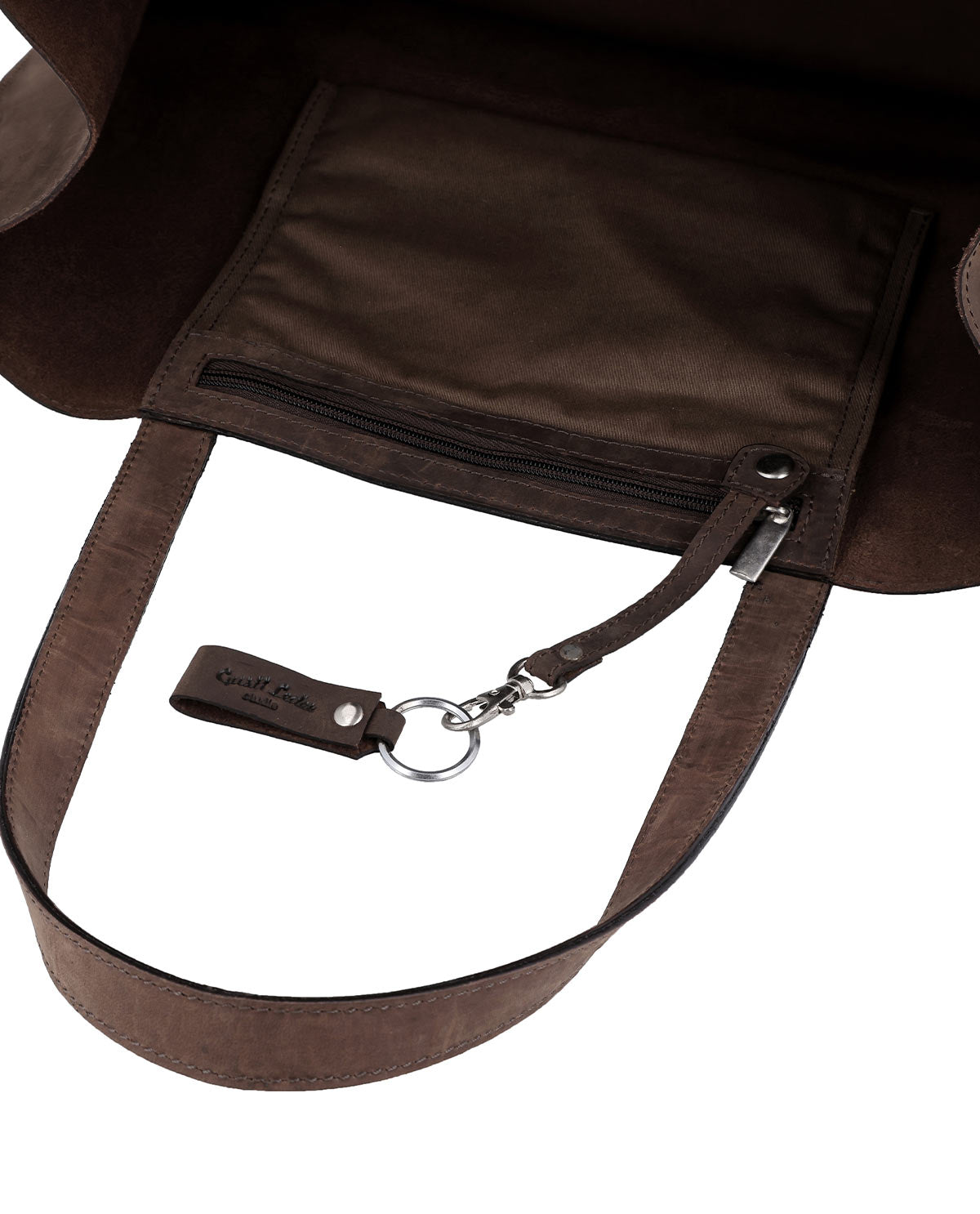 Im Inneren überzeugt der Shopper "Agatha" mit einer klaren Organisation. Ein einzelnes Reißverschlussfach schützt Deine Wertsachen zuverlässig, während ein integriertes AirTag-Fach Dir zusätzliche Sicherheit gibt. Das praktische Schlüsselband sorgt dafür, dass Du Deine Schlüssel sofort findest. Abgerundet wird das Design durch ein dezentes Gravur-Patch, das "Agatha" zu Deinem persönlichen Lieblingsstück macht – funktional, aufgeräumt und bis ins Detail durchdacht.