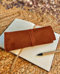 Stiftemappe Federtasche Schlamperrolle Stifteetui Vintage Braun Leder