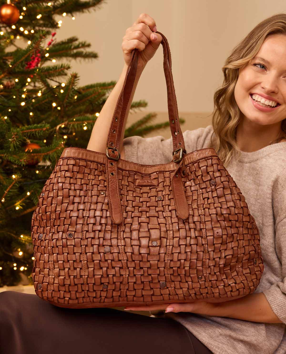 Die Umhängetasche "Demery" fällt durch ihre markante Flechtoptik und edle Metallapplikationen sofort ins Auge. Gefertigt aus hochwertigem braunem Leder, vereint sie einen einzigartigen Vintage-Charme mit robuster Langlebigkeit. Inspiriert durch Berlin begleitet Dich die "Demery" stilvoll durch den pulsierenden Rhythmus der Stadt und jeden Moment Deines modernen Lebens.